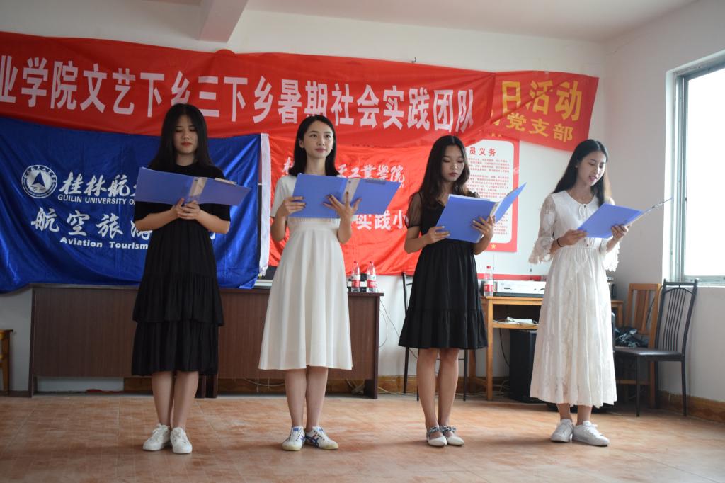 本次活动展现了桂航学子奋发向上、青春朝阳的精神面貌,体现了当代大学生传承航天精神的决心,让基层群众享受到丰富的精神文化食粮。送艺下乡,让文化扶贫落到实处文化关怀,情暖人心。文艺演出献上了桂航学子诚挚的祝福,同时也充分地表达了桂航青年在习近平新时代中国特色社会主义思想指引下,用实际行动传递社会正能量,践行社会主义核心价值观的决心。