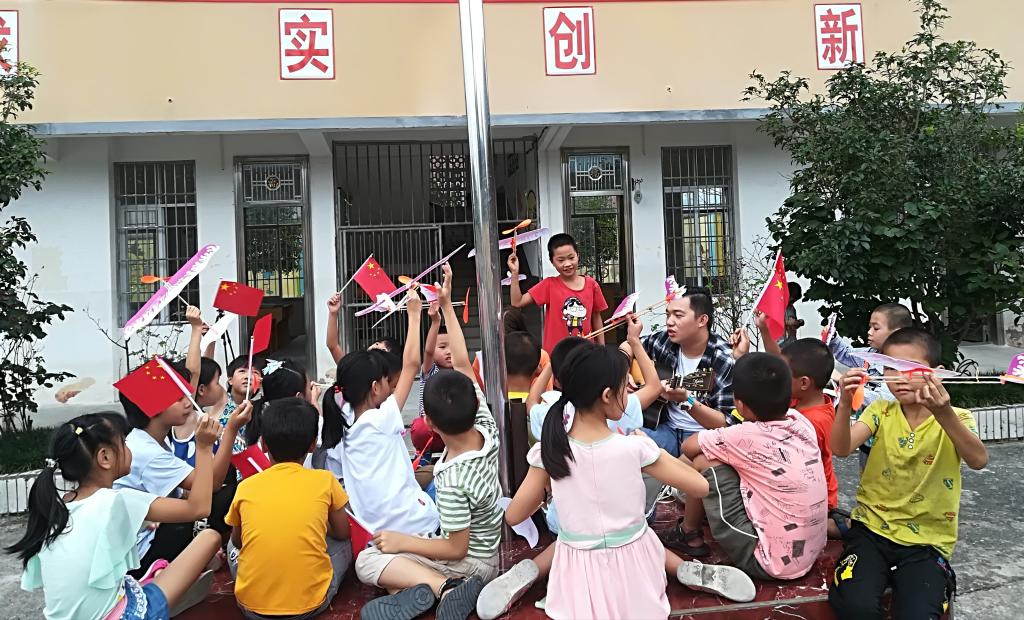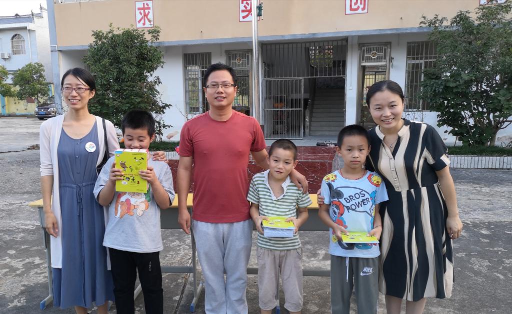同时,团队开展了书籍捐赠仪式,为校方捐赠了近30本英语读本,极大地增加了孩子们对英语学习的动力。最后,支教的同学们还组织小朋友们在国旗下向祖国献唱,激昂的歌声使爱国气氛达到高潮,感染了在场的所有人,体现了团队勇扛“守初心,担使命”的精神旗帜,真正用英语支教点亮留守希望,身体力行携手共建美丽中国。