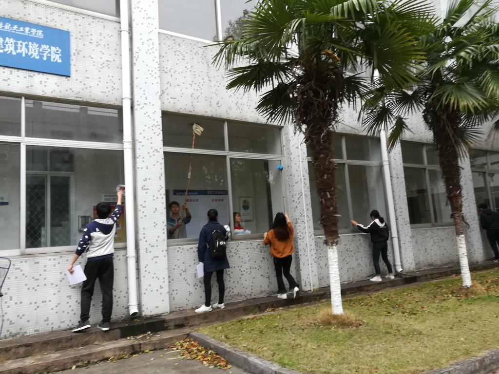 能源与建筑环境学院志愿者打扫教学楼