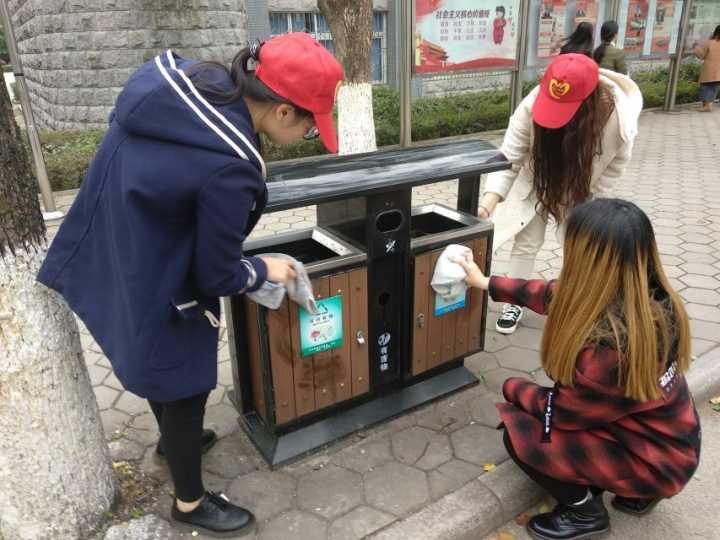 航空旅游学院志愿者清洁垃圾桶