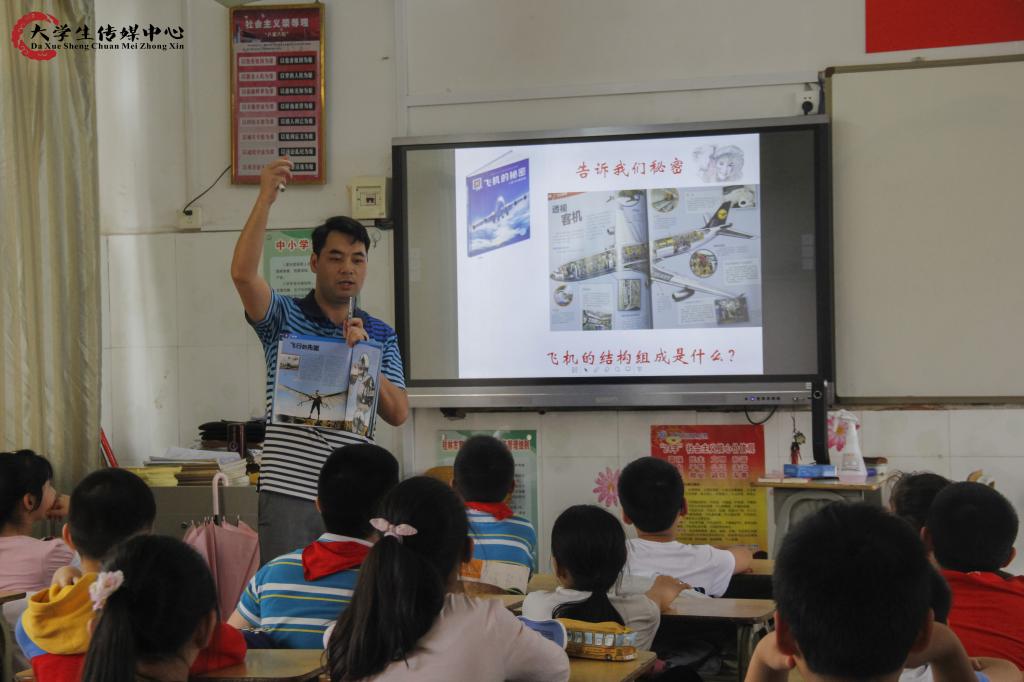 活动中,我校能源与建筑环境学院的老师图文并茂地向现场小学生们讲述了宇宙的奥秘、中国的航天历史等知识并给小朋友们介绍了科普类书籍《飞机的秘密》。航空航天科普工作室的青年志愿者们以诙谐幽默的语言,借助飞船模型给大家演示了飞船进入太空的过程,让孩子们进一步深入了解航天知识。