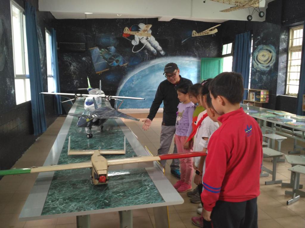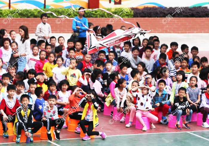 在芦笛小学,我校师生开展了精彩的飞行表演。伴随着马达的低鸣,航模飞行器在师生们头顶呼啸升空,或爬升或俯冲或盘旋,扣人心弦的表演,获得了小朋友们的欢笑和掌声。表演结束后,大学生走进课堂当起了小老师,为孩子们讲述飞机与航天知识,通过图文并茂的演讲以及其他多项互动问答的活动激发孩子们对航天的热情,增强孩子们“中国梦”,“航天梦”的责任感和使命感。