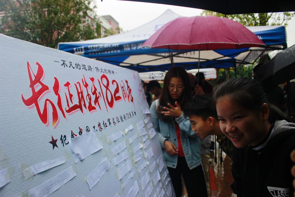 10月22日,为纪念和缅怀红军长征光辉事迹,我校校团委学生部顺利举办了以“不凡的道路,伟大的精神”——纪念长征胜利82周年为主题的纪念活动。活动当天,同学们踊跃参与其中,一起感受当年的红军长征胜利的艰辛与不易。