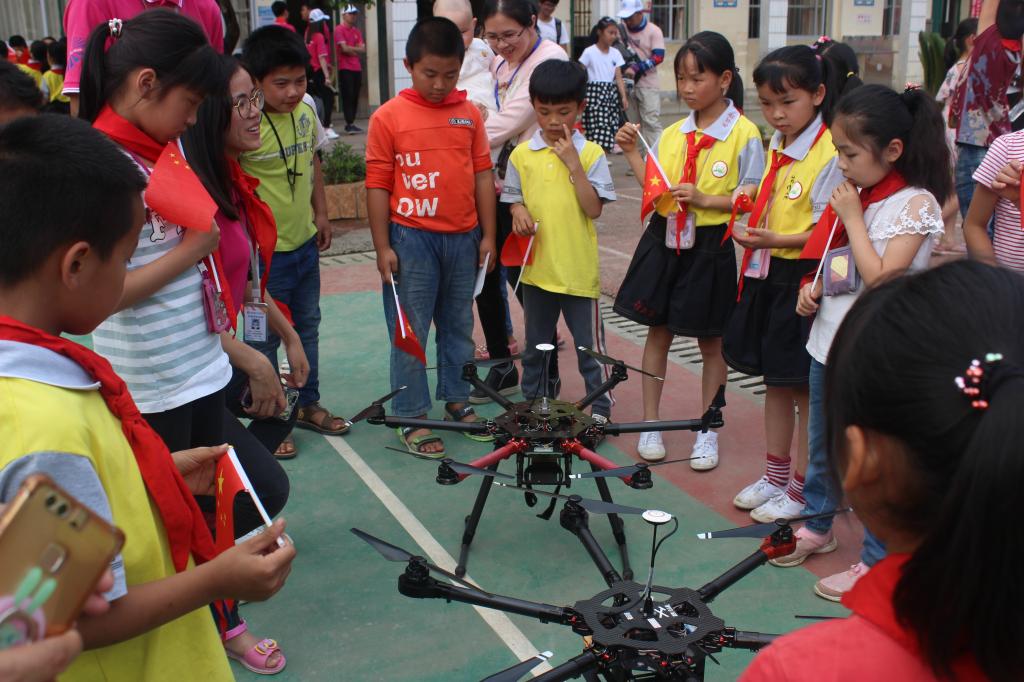 最后,志愿者们还带来了精彩的航模飞行表演,穿越机、纸飞机、3D特技机、多旋翼无人机、f3p等各类航模机型先后起飞,或直线上升、或急速俯冲、或连续翻转,展示了高超的航模表演技术,赢得了现场师生的阵阵掌声和欢呼声。该校三年级的陈同学说,她第一次看航模表演,觉得很神奇,“以前都只在电视上看过。”该校一年级的李同学也兴奋地表示,看完表演后他很想有机会亲自尝试一下操作这些航模飞机是怎样一番滋味,“这些飞机都是航模队哥哥姐姐们自己做的,我觉得他们好厉害!”