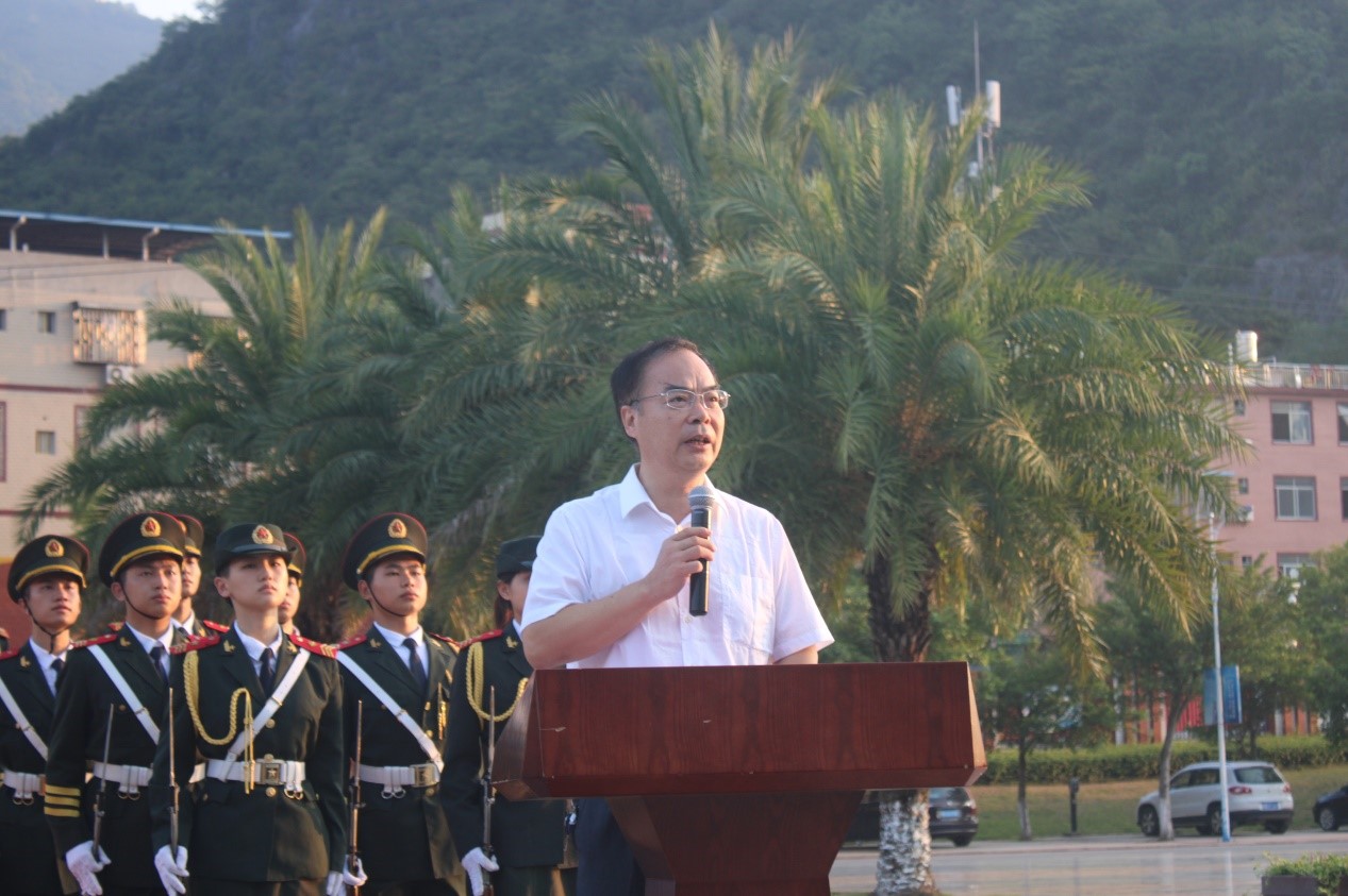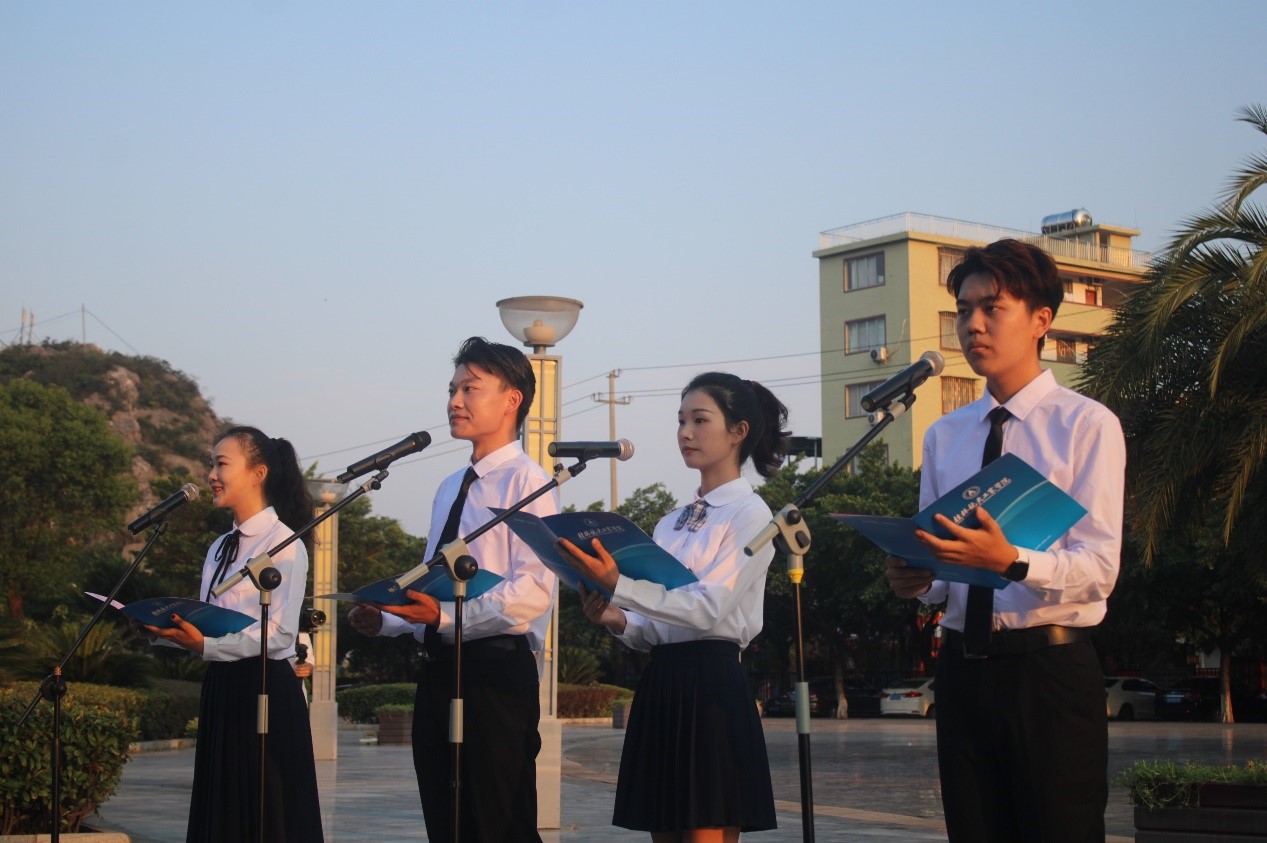 为了提高大学生的爱国意识,增强他们的社会责任感,我校于9月27日上午7时整,在南校区钱学森广场举行了开学第一课——新生升国旗仪式。出席本次升旗仪式的领导老师有校党委刘迎春副书记、学工部部长王凯老师、校团委李昕恬老师,参与人员还有各学院团委书记和2021级各新生班级辅导员及全体新生。