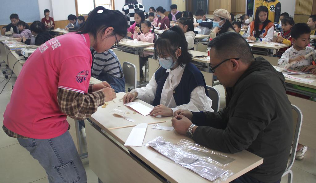 在工作人员的精心讲解下,孩子们对无人机知识有了一定的了解。通过观看航模飞行表演的视频,孩子们对航空航天产生了浓厚兴趣。紧接着的航空航天知识科普互动问答环节,孩子们踊跃发言,互动频频,对航天知识的求知欲溢于言表。通过工作人员的讲解与示范,孩子们自己组装橡皮筋飞机,这不仅激发孩子们动手动脑能力,更加深了孩子们对蓝天的憧憬。