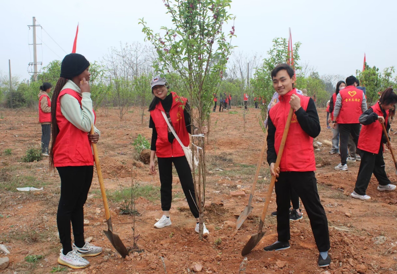 “最是一年春光好,植树添绿正当时”。为了增强我校青年学生义务植树护树的意识,形成爱绿植绿护绿的文明风尚,创造碧水蓝天的绿色校园环境,我校于2023年3月15日上午在南校区探天楼共青林与启天楼绿化带开展了以“‘植’此青绿,‘树’说青春”为主题的青年植树节志愿服务活动。后勤管理处、校团委、青年教师代表以及中、外学生代表等近百人参加了此次活动。