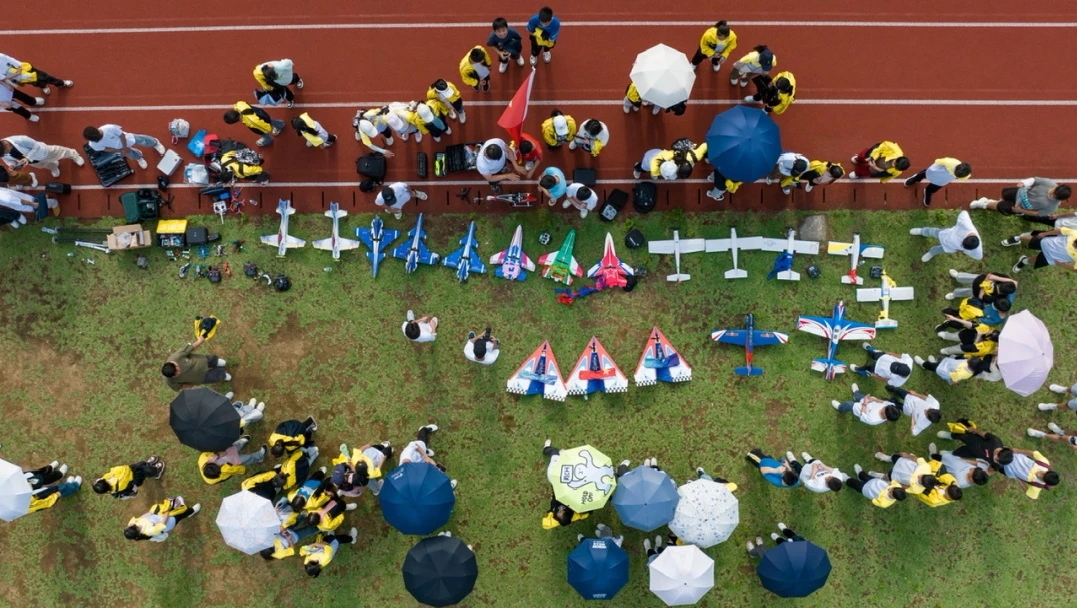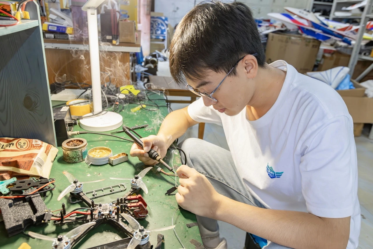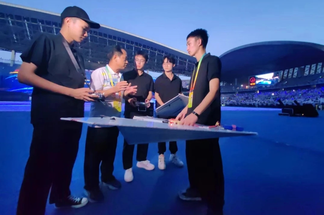 每天,表演队队员都会以小组为单位开展项目维护和训练。南校风雨足球场探天楼附近的空地,是他们固定训练的地方。经过老师的精心指导和团队队员的刻苦训练,团队已经能够独立完成无人机编队、3D特技机、F3P、固体火箭发射等数十种机型的表演,年内参加了2023年中国大学生飞行器设计创新大赛等多项重大赛事,荣获电动滑翔机控制飞行一等奖、微型固定翼限距飞行二等奖、航天火箭发射与返回三等奖等比赛奖项。