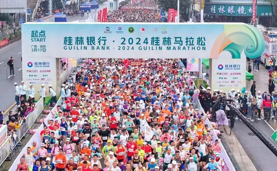 3月17日上午8时,由中国田径协会认证,自治区体育局、桂林市人民政府主办的桂林银行•2024桂林马拉松在桂林市中心广场鸣枪开跑。来自12个国家和地区的3万名跑者在烟雨桂林的美丽背景下,奔跑于10多个知名景点间,用脚步丈量最美山水线路。