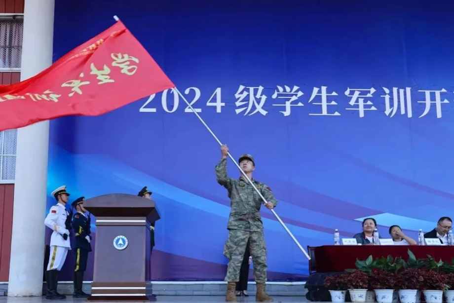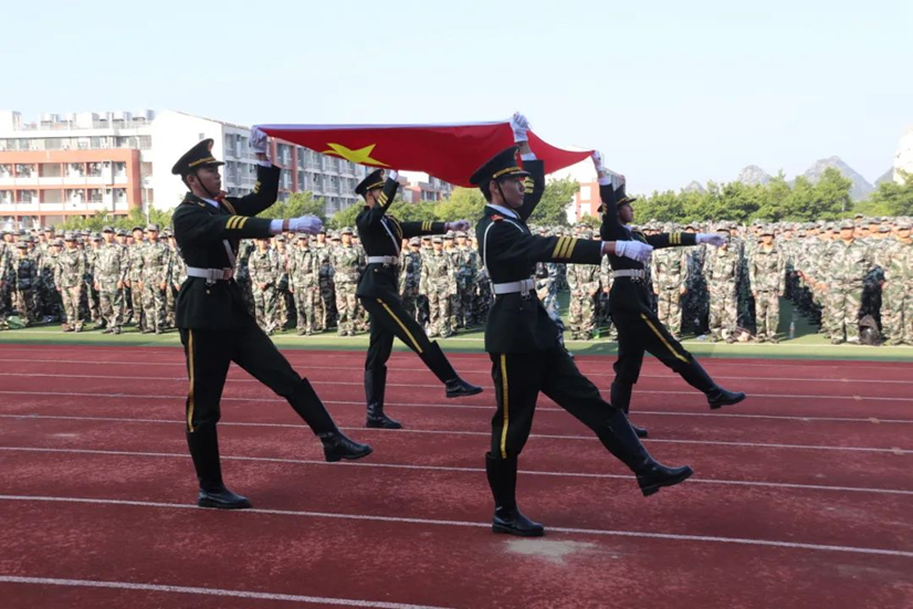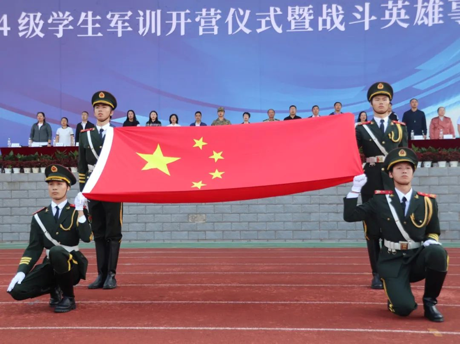 护旗手紧握五星红旗的一角,那面鲜艳的旗帜在风中猎猎作响,仿佛在低语着过往的辉煌与未来的希望。这一刻,每个人的心中都涌动着对祖国的无限热爱与敬仰。随后,军训团旗也在庄严的氛围中进行了交接,象征着新一届军训的正式开始。