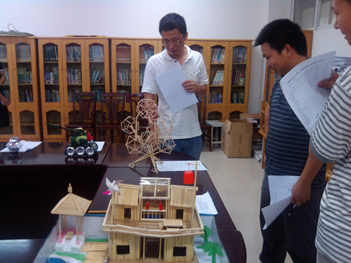 模型制作比赛项目中,“生态、环保新型别墅”作品获得一等奖,“可增式桌椅”、“国家科技馆”等2件作品获得二等奖、“沐馨阁”、“行李箱滑动结构改进装置”、“蓝色小飞机”等3件作品获得三等奖,“两用垫”、“子弹模型”、“创艺装饰家具台灯”、“艺术台灯”、“黄包车和指甲油铁丝花”、“花跃笼翔”等6件作品获得优秀奖。