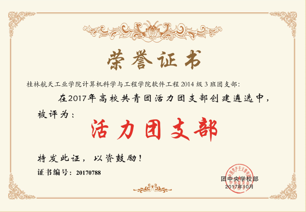 日前,由团中央学校部组织开展的高校共青团“活力团支部”创建遴选活动结果正式公布。我校计算机科学与工程学院软件工程2014级3班团支部在1000个进入全国遴选环节的团支部中脱颖而出,被评为2017年全国高校“活力团支部”。