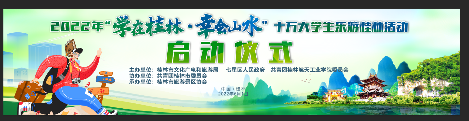 为深入贯彻落实习近平总书记视察桂林时的重要讲话和重要指示精神,加快桂林世界级旅游城市建设,根据全市1—5月经济运行分析调度会会议要求,坚持问题导向,精准施策,努力促进桂林旅游业消费市场实现稳步复苏。我市拟开展2022年“学在桂林·幸会山水”十万大学生乐游桂林活动启动仪式,以进一步丰富全市大学生的精神文明生活,增强其对桂林山水文化的认同和传播,达到学游结合,以点带面推动全市大学生乃至全区大学生向往桂林旅游的目的。